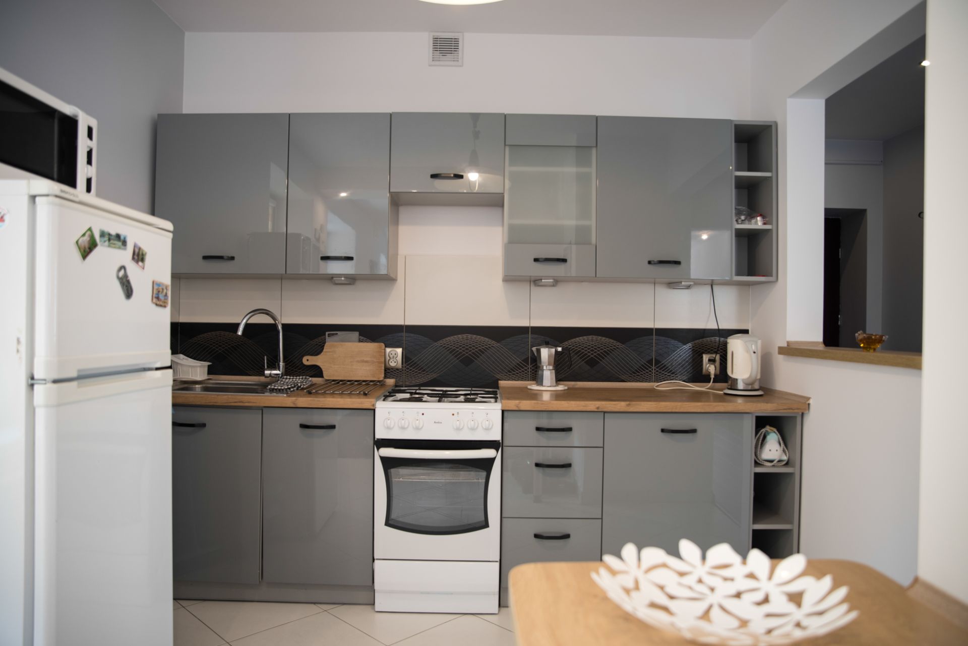 Lodówko-zamrażarka, płyta gazowa, kuchenka mikrofalowa, ekspres do kawy, czajnik elektryczny, talerze, garnki, sztućce – to niezbędne elementy, które sprawią, że poczujesz się, jak u siebie w domu.