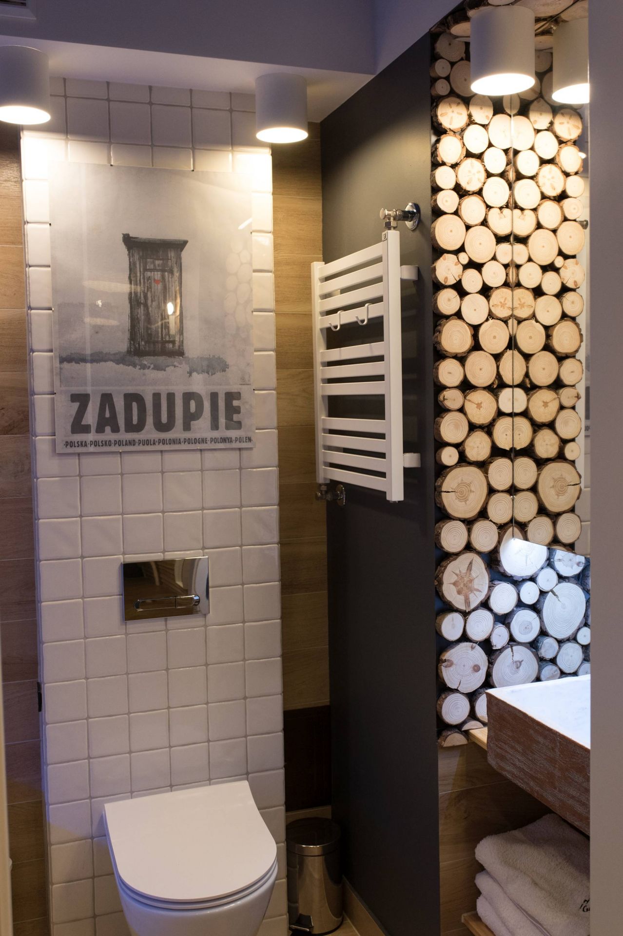 * łazienka z zabawnymi wzorami i grafikami,